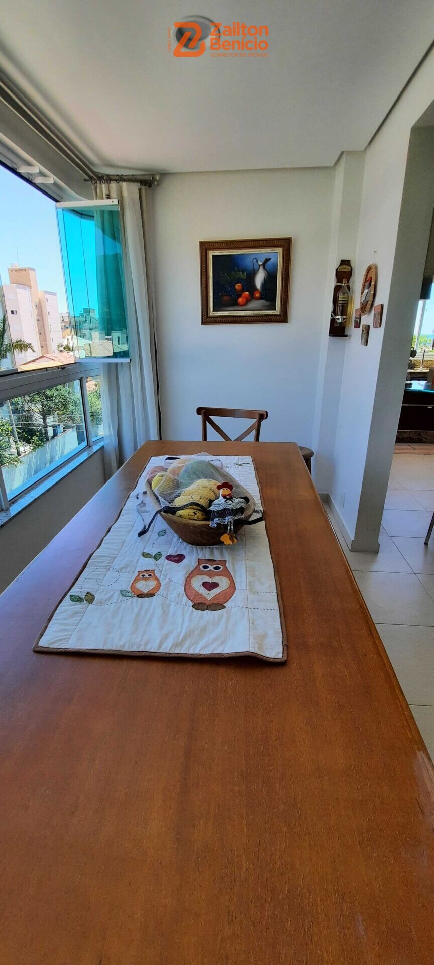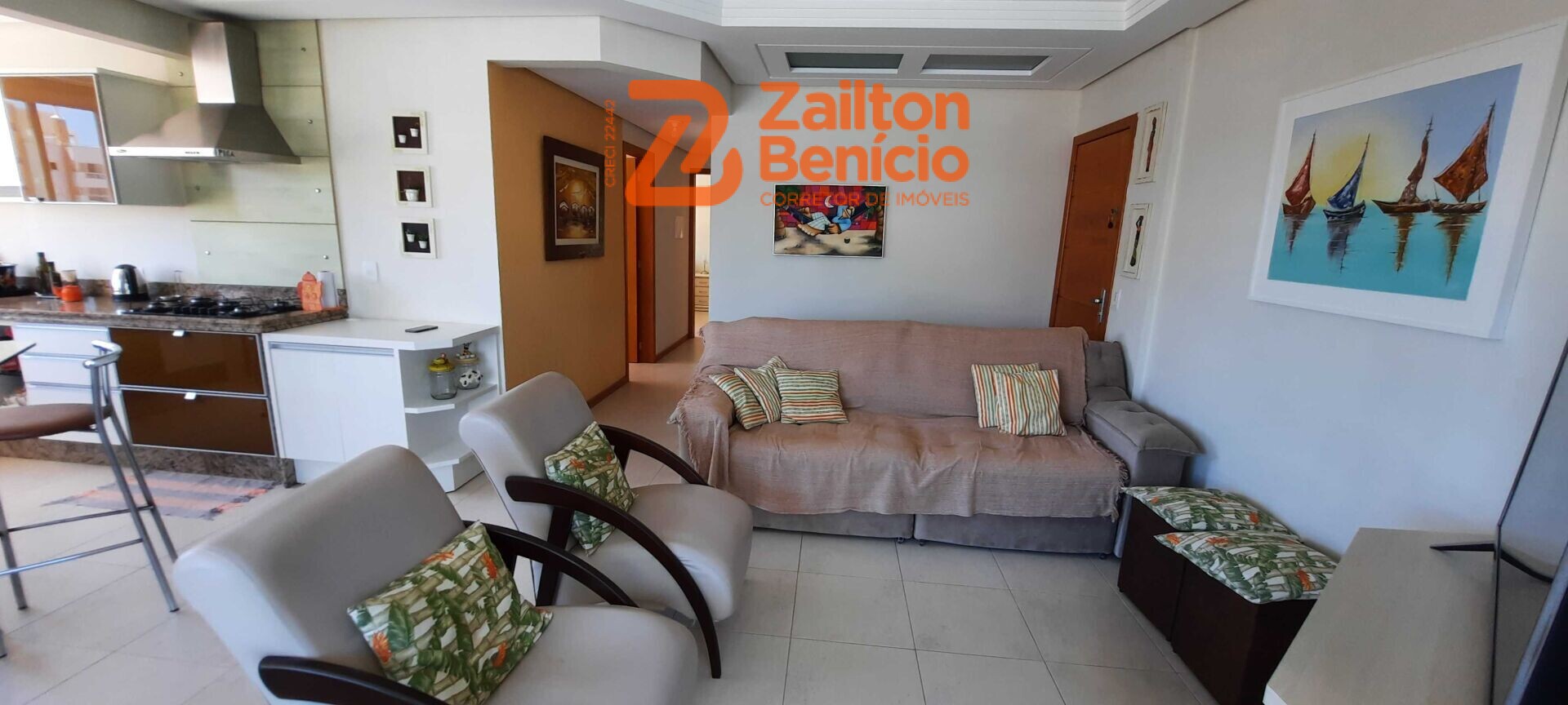 Em um ambiente acolhedor, possui uma sala de estar confortável integrado a cozinha e com a sacada que possui uma churrasqueira (à carvão).